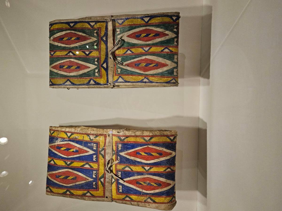 I leaned in closely to the serape before me, as close as the marking on the floor would allow. The overall impact was stunning with brilliant, bold color, but viewed closely, I could see the warp and woof of countless rows, the tight, compact structure built by repeated shuttling. The placard revealed more: